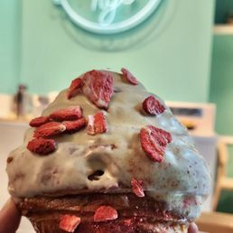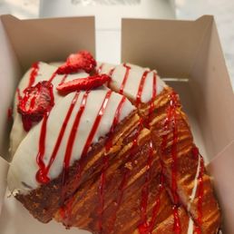 Stumbled across this place on morning walk and couldn't resist the donuts in the window. Coffee was great. Tried the strawberry and cream and Nutella croissants. Both were delicious and honestly everything looked so tasty. Will be back. Service was great and fast